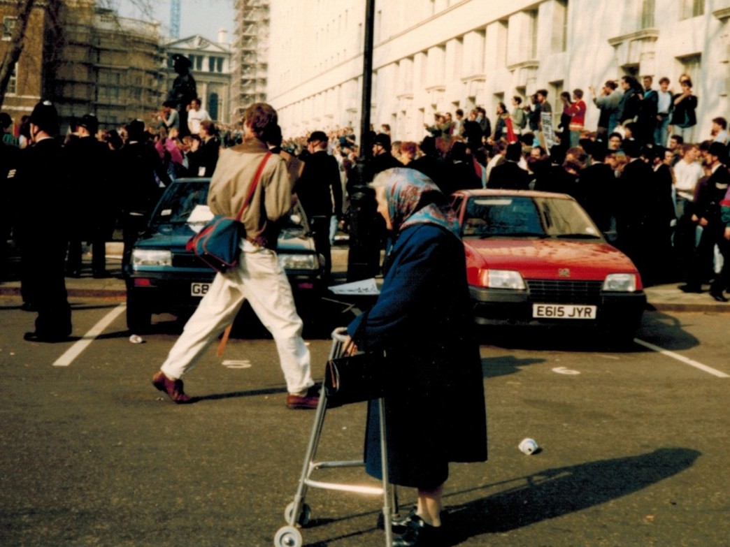 […] Walking through London as part of the 1990 Poll Tax march. […]